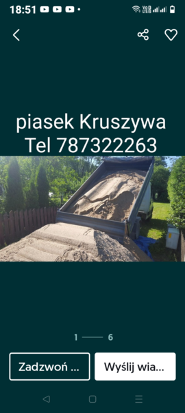 Sprzedaż transport piasku kruszyw tel 787322263