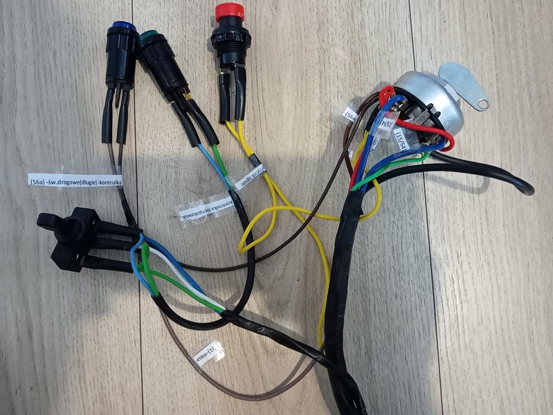 Stacyjka skrzynka bezpieczników wszystko jest spięte jak i też podłączone kontrolki. Przewody od prądniczek czy alternatora również mają podpisane przewody i numerki do jakiego pinu podpiąć .