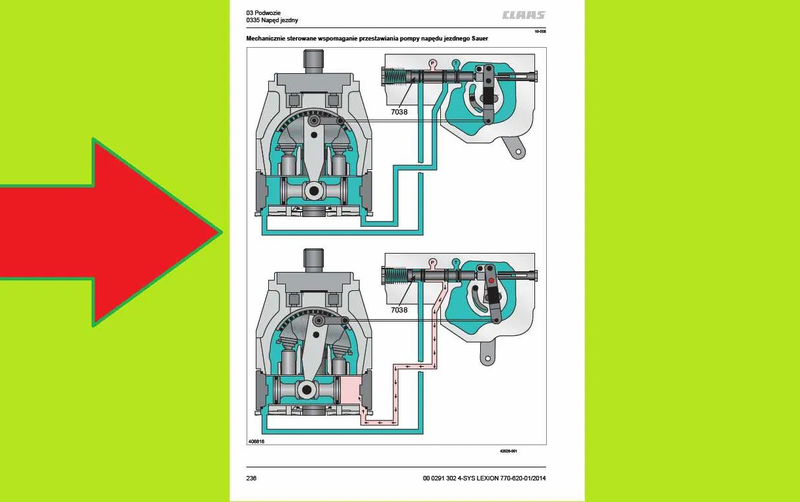 jak również demontażu i montażu. Zawiera schematy elektryczne i hydrauliczne.